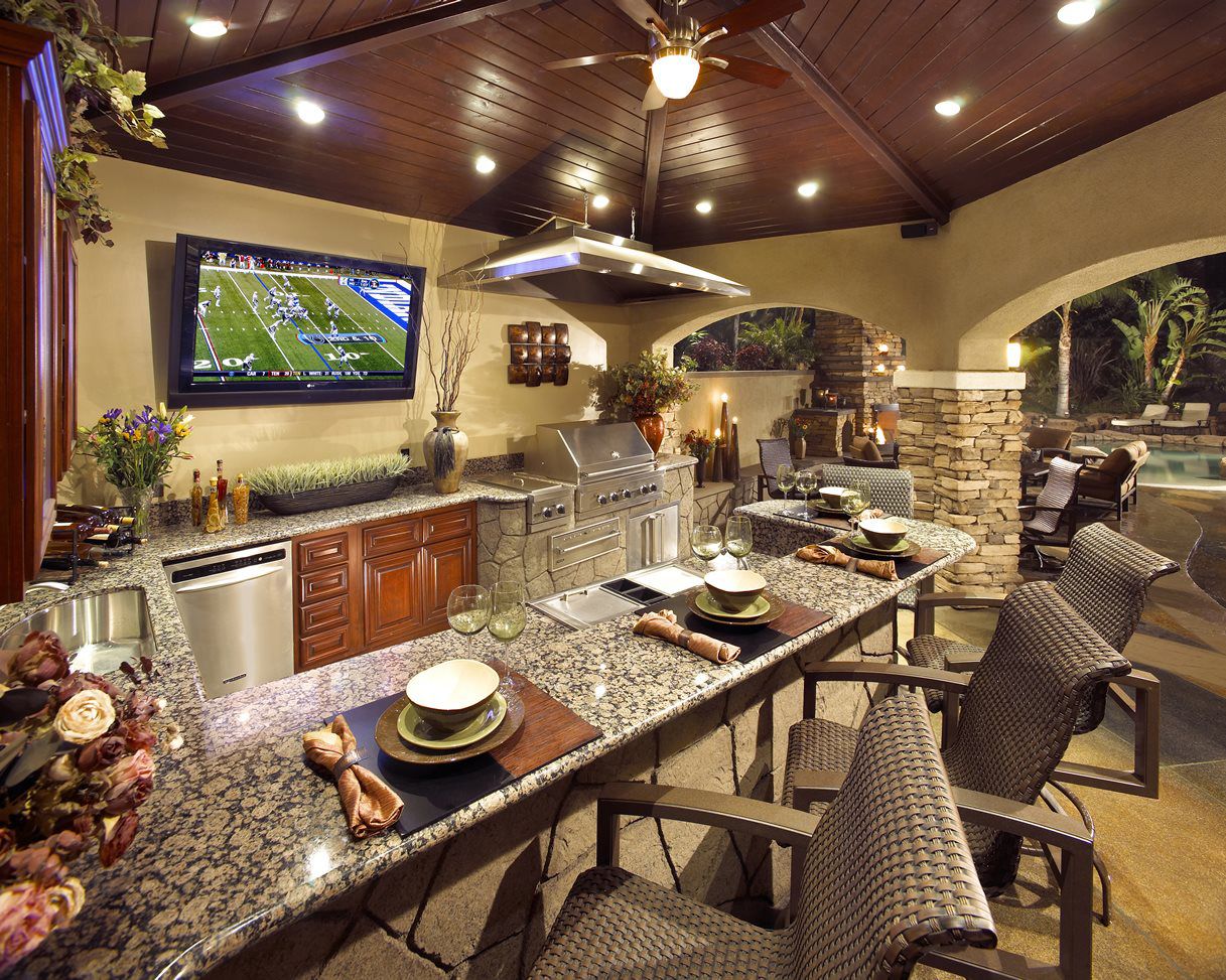 Today’s sophisticated client wants more than just a pool and spa in their back yard. They want their back yard to be an extension of their home and a reflection of their personality and lifestyle. The convenience and luxury of the inside of their home brought outside, where you can sit up at a bar, enjoy a game on a large screen T.V. and savor a meal prepared on a professional grill, all at the same time.