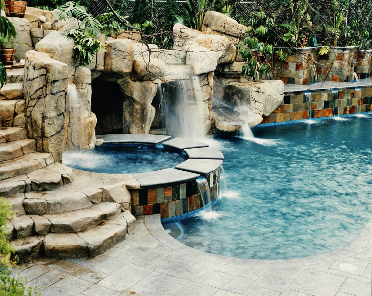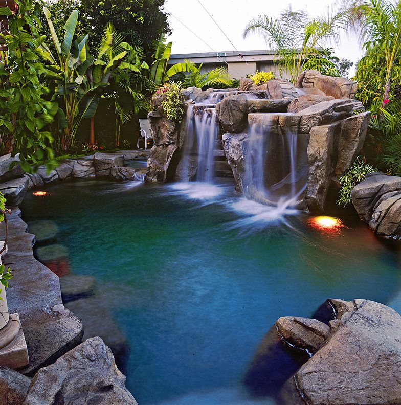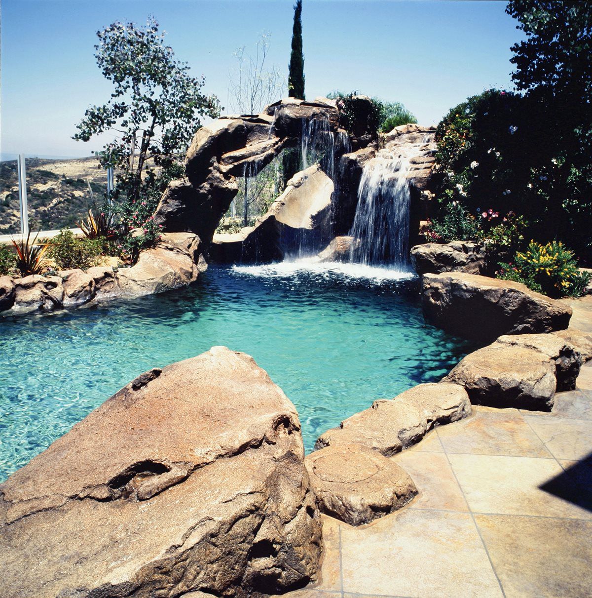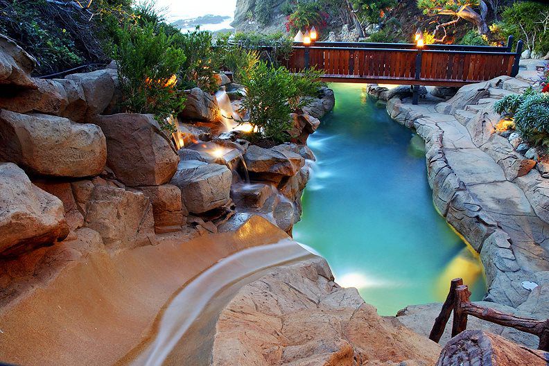 Slides can add an exciting element to your rock pool. Like a short bobsled ride on the Matterhorn at Disneyland, with a splash landing!