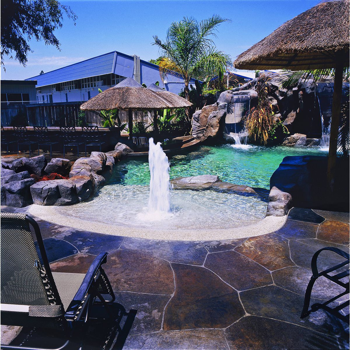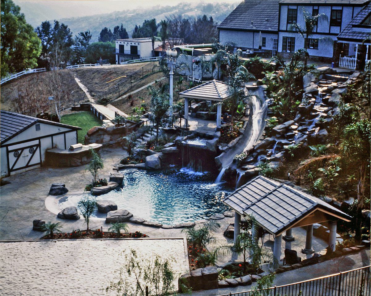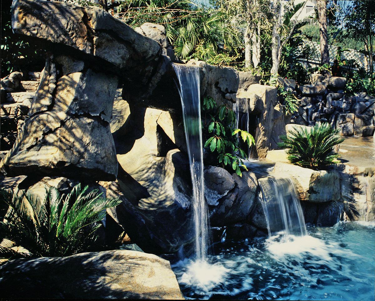 Slides can add an exciting element to your rock pool. Like a short bobsled ride on the Matterhorn at Disneyland, with a splash landing!