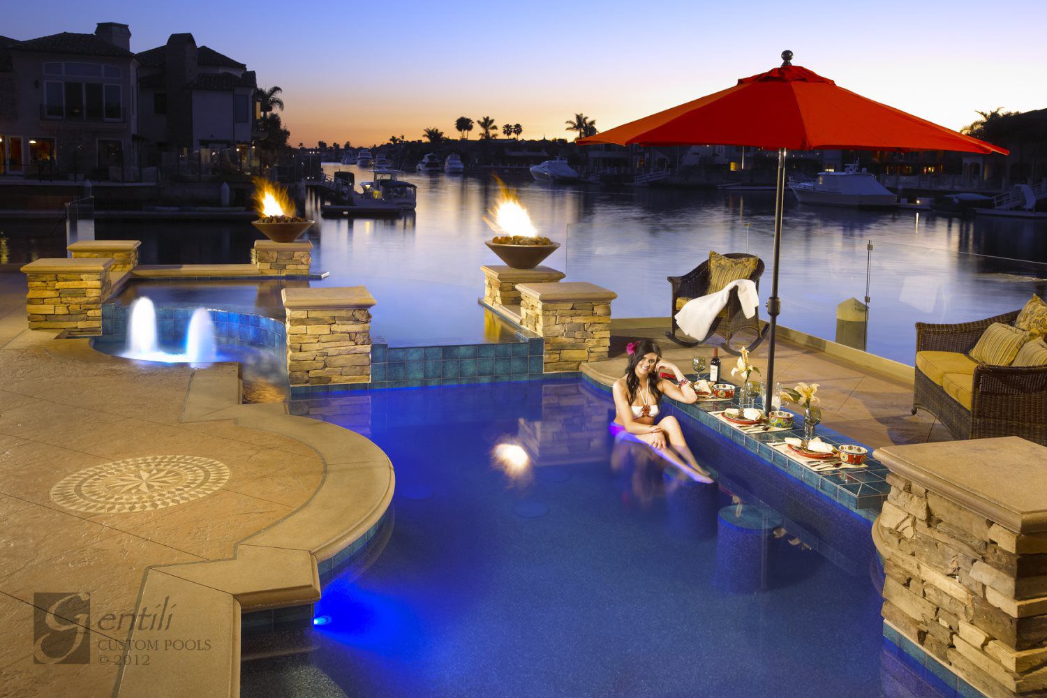 Swim-up bars are a great way to sit and relax and interact with those who want to be in the pool while you can be dry on the outside.